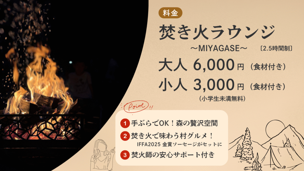 ※料金には焚き火道具一式と食材セットが含まれます。