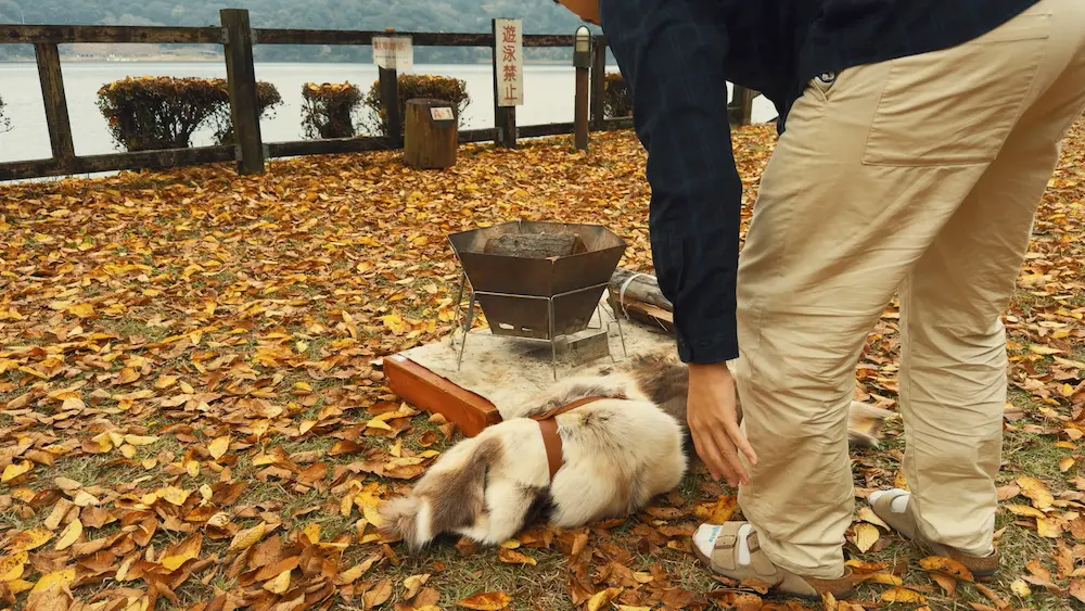 トナカイの毛皮は地面やチェアに敷くだけで、冷気をしっかり遮断。焚き火中やじっと座っている時間でも、下からの冷えを防いでくれます。