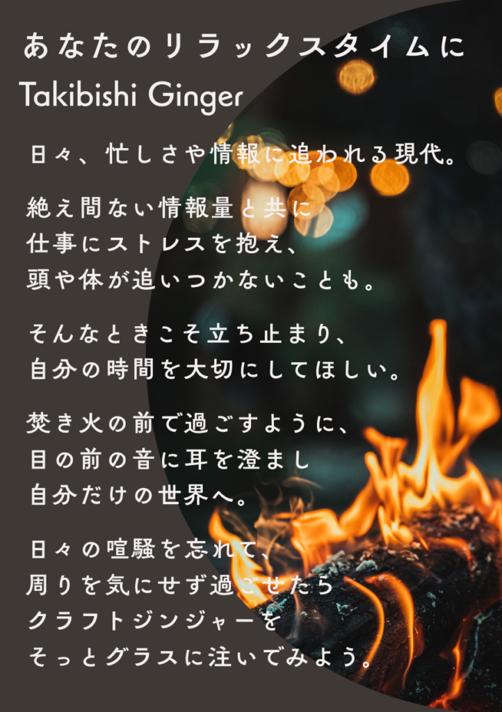 焚火師ジンジャーは、そんな特別な時間に寄り添うノンアルコールドリンクです。