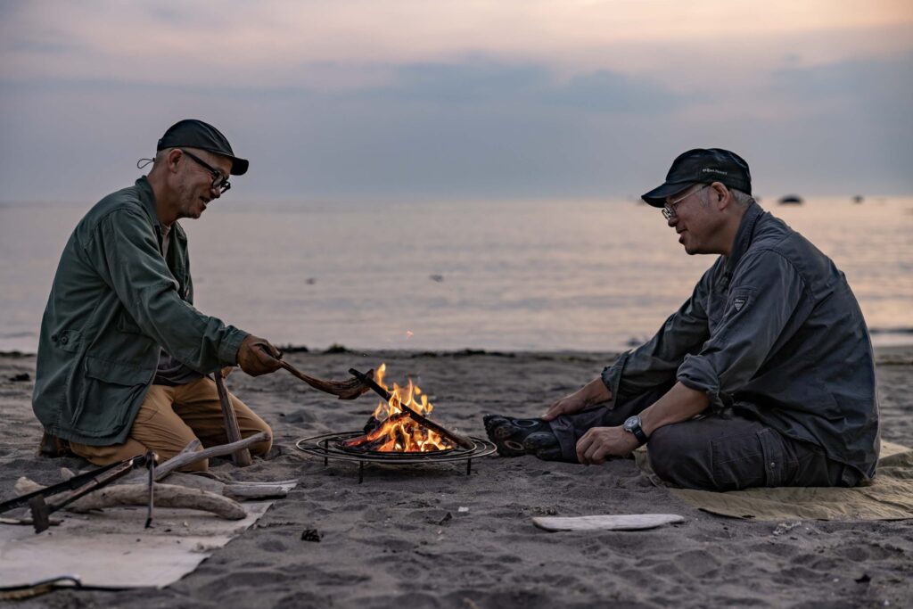 焚き火をより深く楽しむことを追求する2人の男