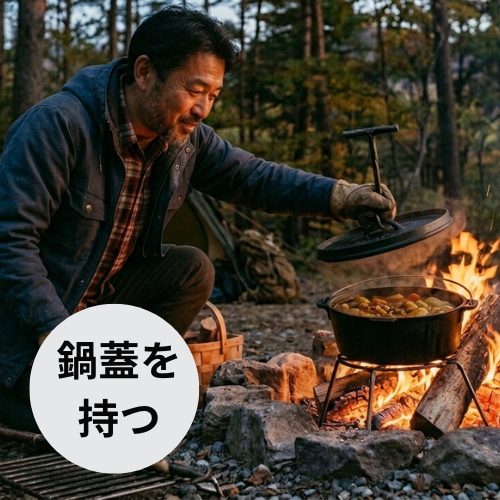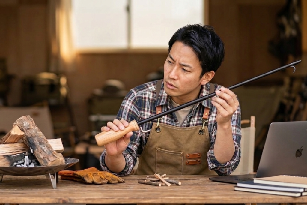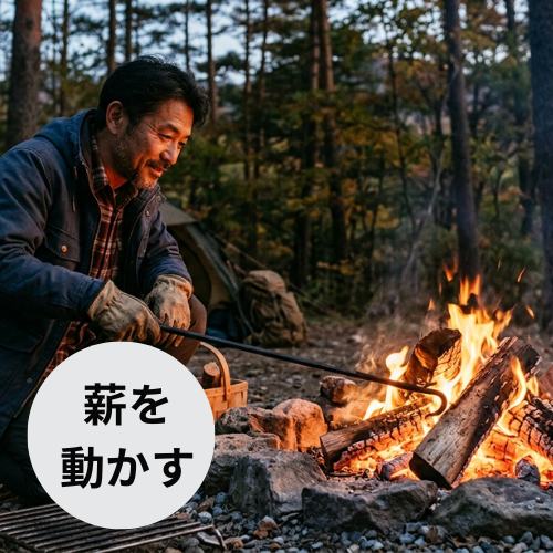 - 火かき棒 → 薪や熾火を動かして熱源を移動させる!